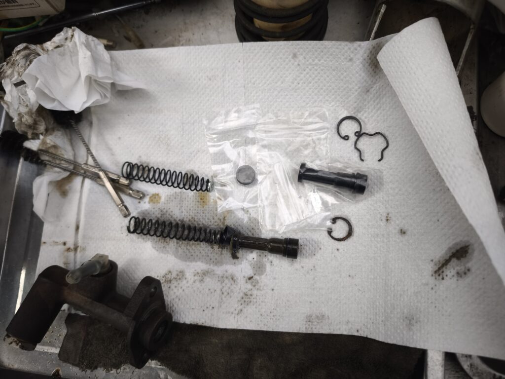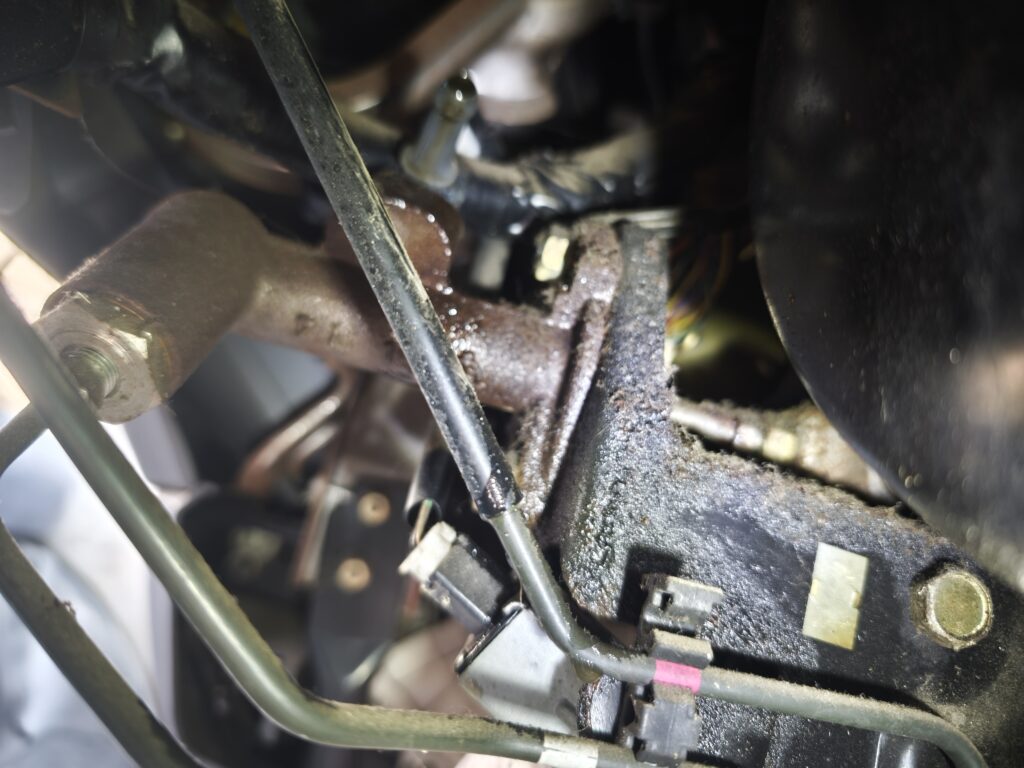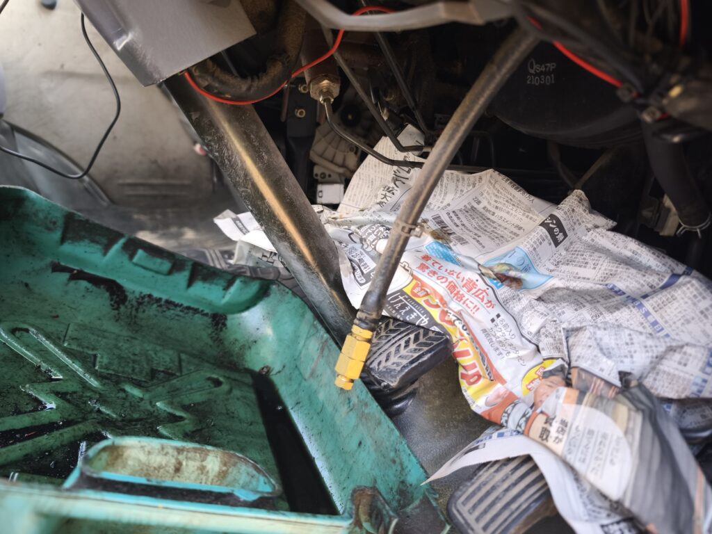 バネットトラック(SK82 ボンゴ)ヒーターコア交換 202403261550 日産バネットトラック SK82TN (マツダ ボンゴのOEM車)三菱デリカのSK82系も同じです。今回はブロアモーター交換とヒーターコア交換です。 ブロアモーター交換でもこの車はダッシュボードを外さないといけないので、ついでに詰まってるヒーターコアも交換します。 エアコンのエバポレーターもフィンが埃で詰まってるのでリフレッシュします。 202403251750 ダッシュボード外す備忘録です。 グローボックスは右下のヒンジ部分を上に持ち上げて外します。 202403261333 メータ外して裏にあるネジを外します。 ダッシュボード上側は左右と真ん中の3本 202403261416 エアーバックコンピューターのカプラー、ダッシュボードのハーネス白い大きなカプラー ステアリングシャフトも取り付けボルトを外しておきコンビネーションスイッチのエアーバッグのカプラーを外します。 202403261506 ウォッシャータンク外して、センターのトリムとかを外し、オーディオ外し、エアコンコントロールパネルからダンパーに行くワイヤーを外し その他のカプラーとか外していきます。 202403261411 ダッシュボードのフレームを留めてるネジを外します。 202403261427 ブレーキリザーバータンクをフリーにしておきます。ダッシュボードのフレームのネジを外します。 202403261459 センターにもステーが有ります。下を緩めて上を外します。 202403261551 フレームごとなので結構重たいです。 202403261620 運転席側の白い大きなカプラーは外さなくてもよかったです。 202403261833 ヒーターユニットを取り出してブロアモーターとブロアファンを交換します。今回はヒーターコアも交換するのでヒーターホースを外してますがブロアモーターだけ交換でヒーターユニット付けたままだと少しやりにくいかもしれません。 202403261849 ヒーターコアはSK82用の中古が見つからなかったのでSKF2MNのを使いました。 202403271122 エアコンのエバポレーターも酷いことになってました。 202403271139 埃が溜まってフェルト状で張り付いてるので掃除機で吸い取りました。最後に反対側からエアーブローで通しました。 バネットトラック クラッチマスター修理 クラッチが切れなくなったバネットトラック クラッチマスターからフルードが漏れてます エアーが噛んだようです。 ブレーキオイルのリザーブタンクからのホースを抜きます。栓をしてこぼれないようにします。 MIYAKOのMK-0113 で修理します。 ボンゴのOEM車なのでSK82ボンゴと同じです。 クラッチマスターとレリーズシリンダーはタイタンダッシュのSYE-6 とも共通みたいです。 ボンゴ系もタイタンダッシュもエアー抜きに苦労します。 投稿ナビゲーション 三菱DY-359上下送りミシンをブラザーDB2-B737のテーブルに付ける手押し一輪車電動化 コメントを残す コメントをキャンセルメールアドレスが公開されることはありません。 ※ が付いている欄は必須項目ですコメント ※ 名前 ※ メール ※ サイト 次回のコメントで使用するためブラウザーに自分の名前、メールアドレス、サイトを保存する。 Δ このサイトはスパムを低減するために Akismet を使っています。コメントデータの処理方法の詳細はこちらをご覧ください。